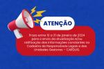 TCE/AL alerta para o prazo de cadastro e recadastramento no CARDUGO Tribunal de Contas de Alagoas, alerta todas as unidades gestoras e seus responsáveis para o prazo entre 10 a 31 de janeiro de 2024 para o envio da atualizaç&atil...