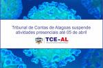 Tribunal de Contas de Alagoas suspende atividades presenciais até 05 de abrilDevido à pandemia de Coronavírus, o Tribunal de Contas de Alagoas amplia medidas restritivas em relação aos seus funcionários, que ser...
