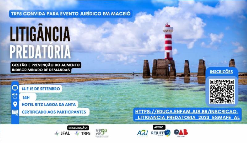 Tendo em vista a importância do diálogo para o contorno da problemática, o Tribunal Regional Federal da 5ª Região (TRF5) realiza o evento jurídico “Litigância Predatória: Gestão e Prevenção do Aumento Indiscriminado de Demandas”. A programação acontece no Hotel Ritz Lagoa da Anta, em Maceió, nos dias 14 e 15 de setembro.