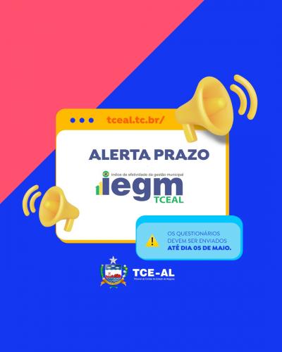 O Índice de Efetividade da Gestão Municipal (IEGM), será aplicado no exercício de 2025, com base no ano de 2024, conforme regulamentado pelo Ato 24/2025 do Tribunal de Contas do Estado de Alagoas (TCE/AL). O prazo para responder aos questionários de 2025 será de hoje (20) até 5 de maio.